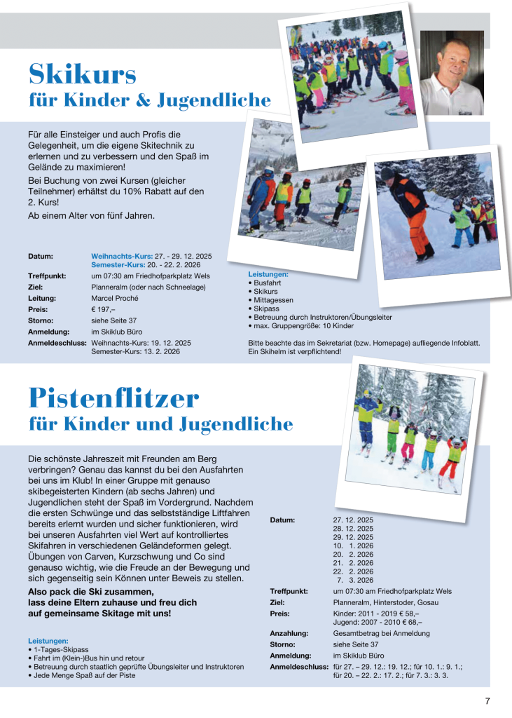 | Skikurs | Planneralm | 27.12.25 - 29.12.26 | 07:30 am Friedhofparkplatz | 19.12.25 |