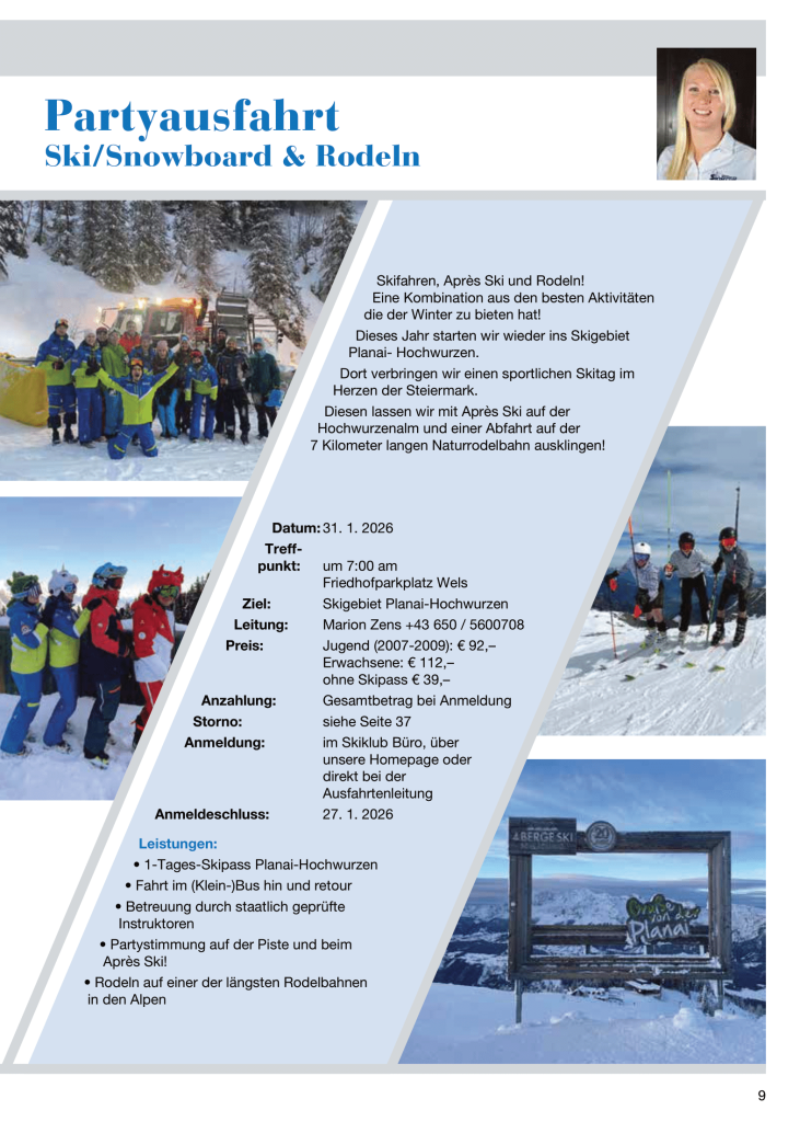 | Partyausfahrt | Schladming | 31.01.26 | 07:00 am Friedhofparkplatz | 27.01.26 |