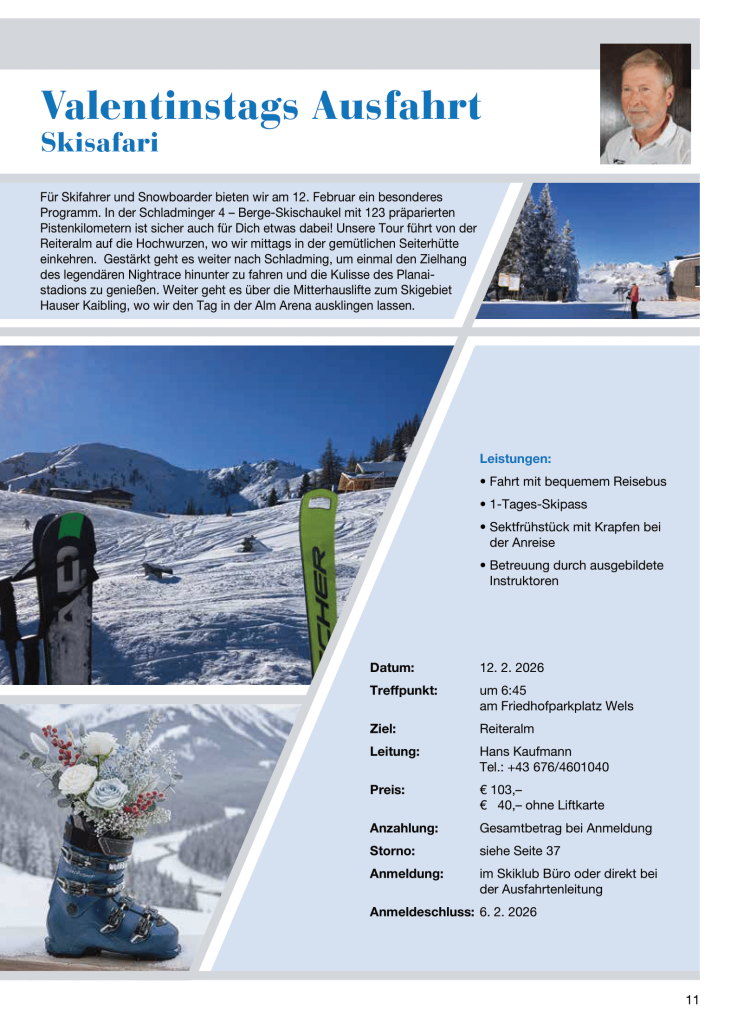 | Valentinsausfahrt | Reiteralm | 12.02.25 | 07:00 am Friedhofparkplatz | 06.02.26 |