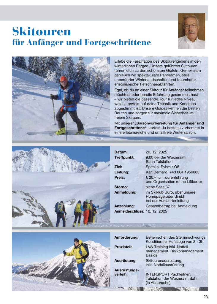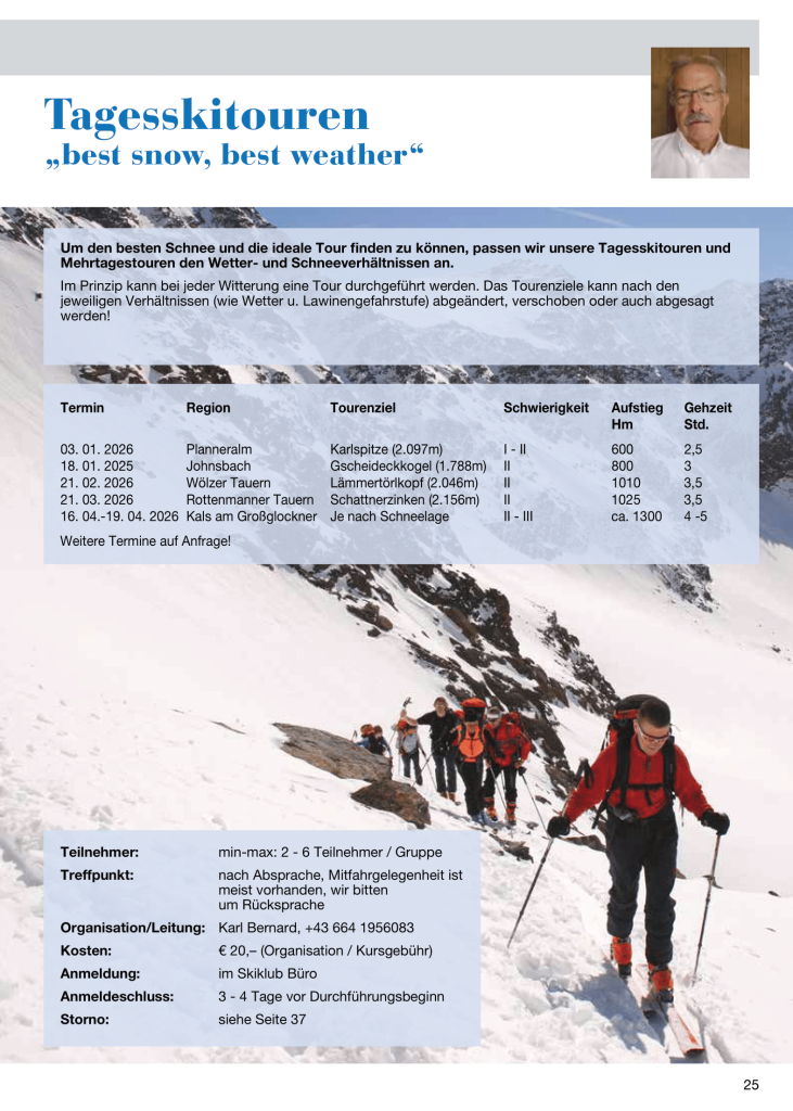 | Skitouren 2 | Johnsbach | 18. 01. 2025 | nach Absprache | 13.01.26 |